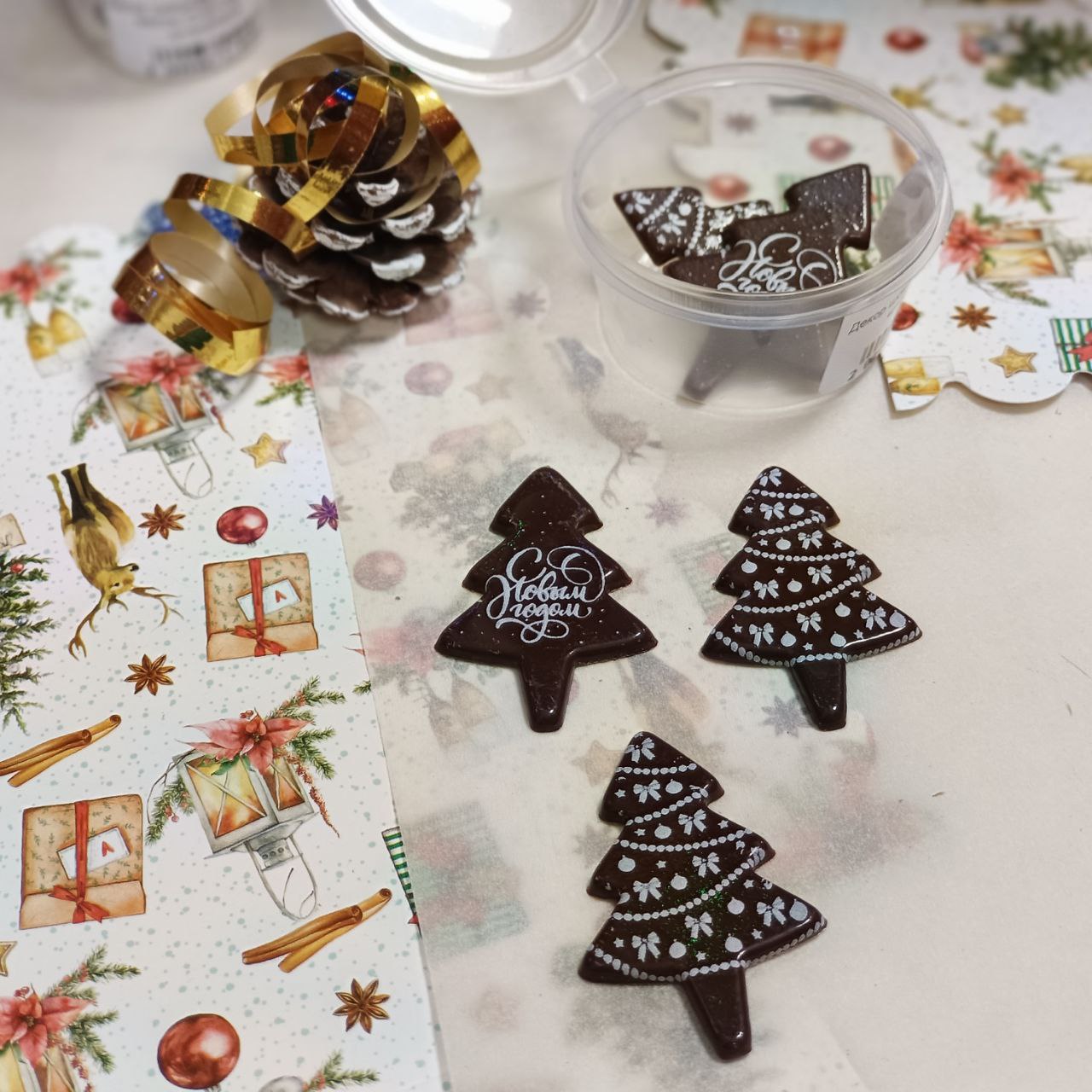 Готовый декор, изготовленный на основе темной кондитерской массы, поможет быстро украсить Вашу новогоднюю выпечку. Идеально подойдет для украшения тортов и пирожных.