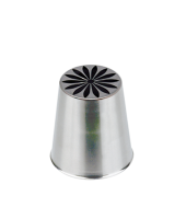 насадка имеет форму шестиконечной звезды с закрытым центром и скошенными лучами. Насадка позволяет сформировать цветок из крема одним движением. Цветок получится как настоящий, со множеством деталей.