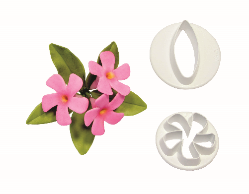 В комплект входят 2 вырубки - для листьев и цветков. По размерам получившиеся цветки идеально подходят для украшения кексов или послужат заготовками для более крупных и пышных соцветий. Очень эффектно они будут смотреться в роскошных свадебных букетах из сахарной мастики.